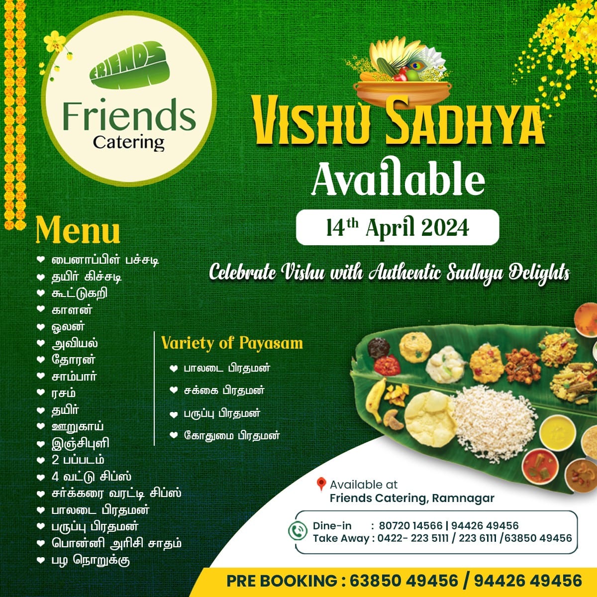 Located in the heart of Coimbatore, Friends Restaurant is a culinary haven for vegetarian food lovers. This cozy spot at 175 Sarojini St, Ram Nagar, offers an inviting atmosphere, friendly service, and a hygiene-focused environment that ensures a delightful dining experience.